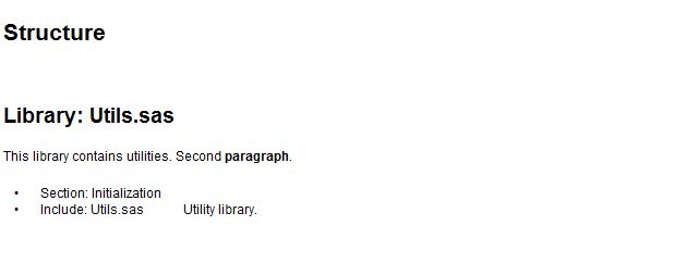 In this example first the program section "Initialization" is marked and then the inclusion of the "Utility library" is declared. The output will look like this: