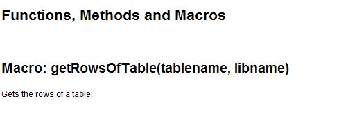 /*!****************************************************** * @macro "getRowsOfTable(tablename, libname)" * Gets the rows of a table. ********************************************************/
