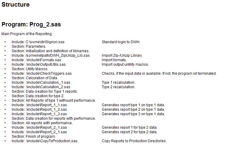 | @step | Describes a step (e.g. a SAS step or proc). | 1 | @step Stepname Description |