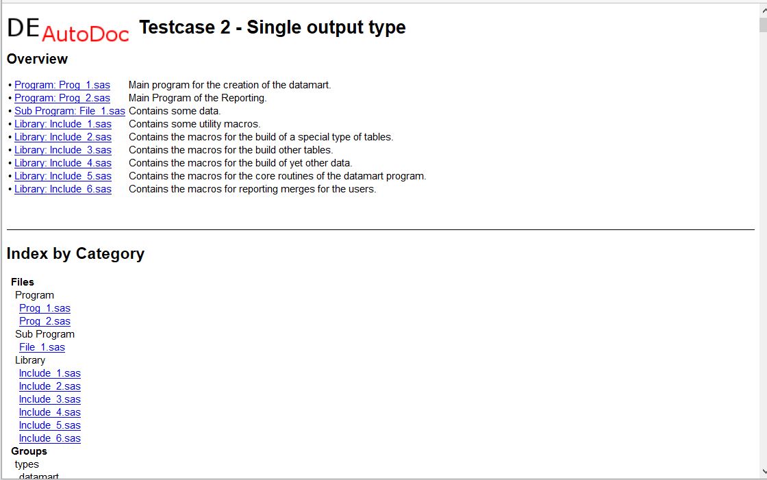 This example searches only for SAS programs and creates the documentation only for those. It is also possible to search for more than one extension, by separating them by commas, as in the next example.